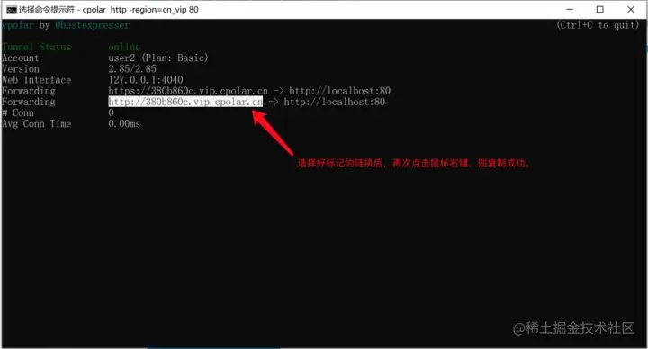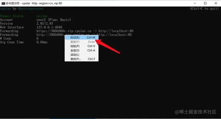 回到cpolar命令行窗口,按CTRL+C键,退出cpolar