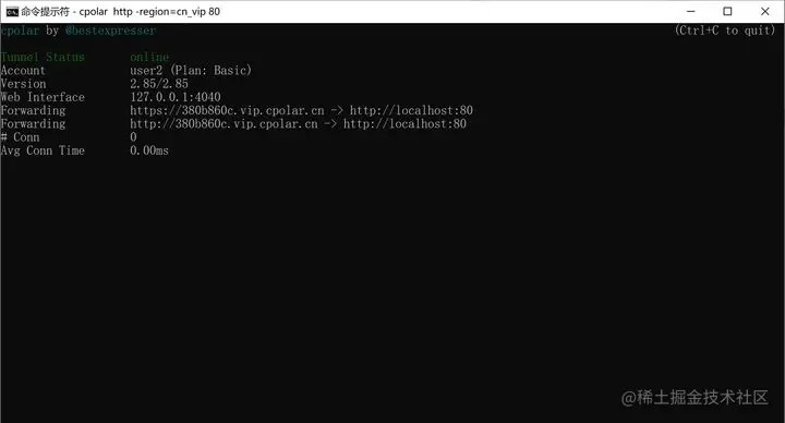 这里,使用cpolar内网穿透工具,如果您还没有安装,请参考前一篇教程《如何在Windows下安装cpolar》