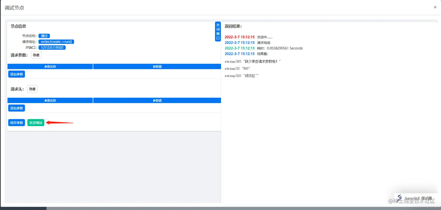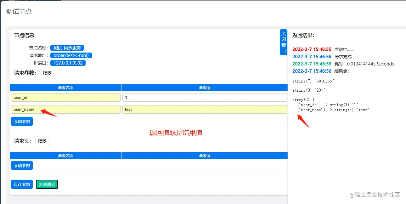 可以对调试参数进行在线设置和保存,点击调试后对应的结果会在右侧窗口滑出。