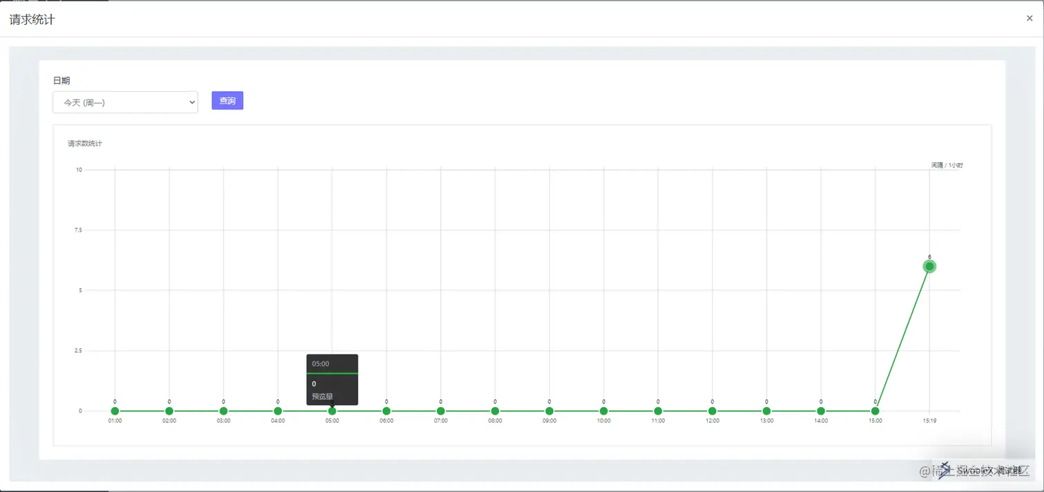 最后回到服务中心,多发送几次调试请求,再点击统计按钮,就可以查看到下图效果: