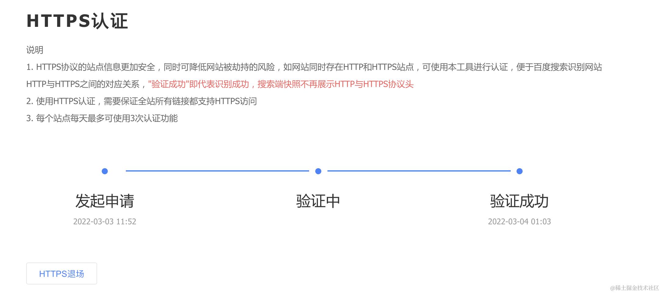 点击「我知道了」,就会跳转到 HTTPS 认证这里: