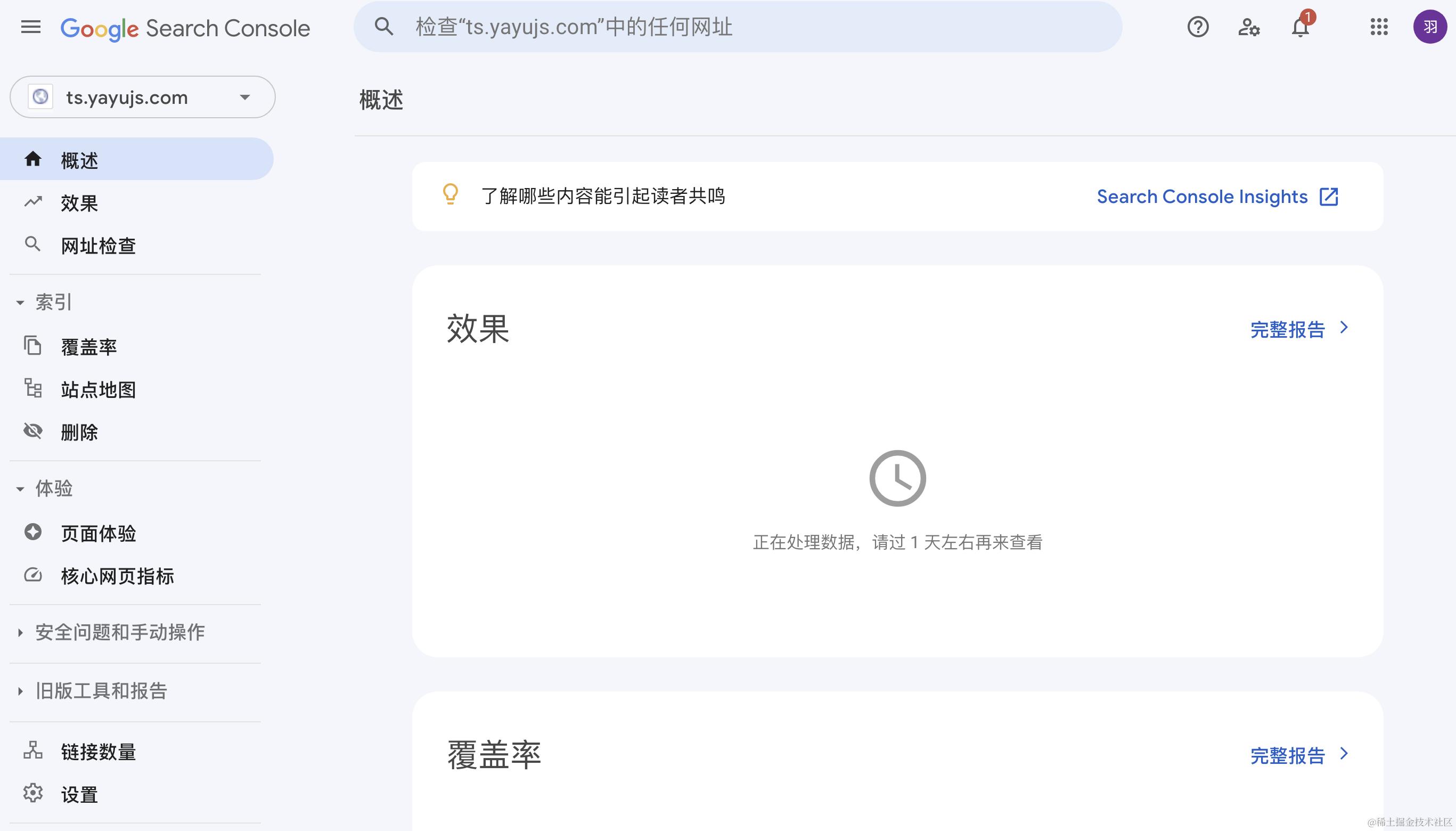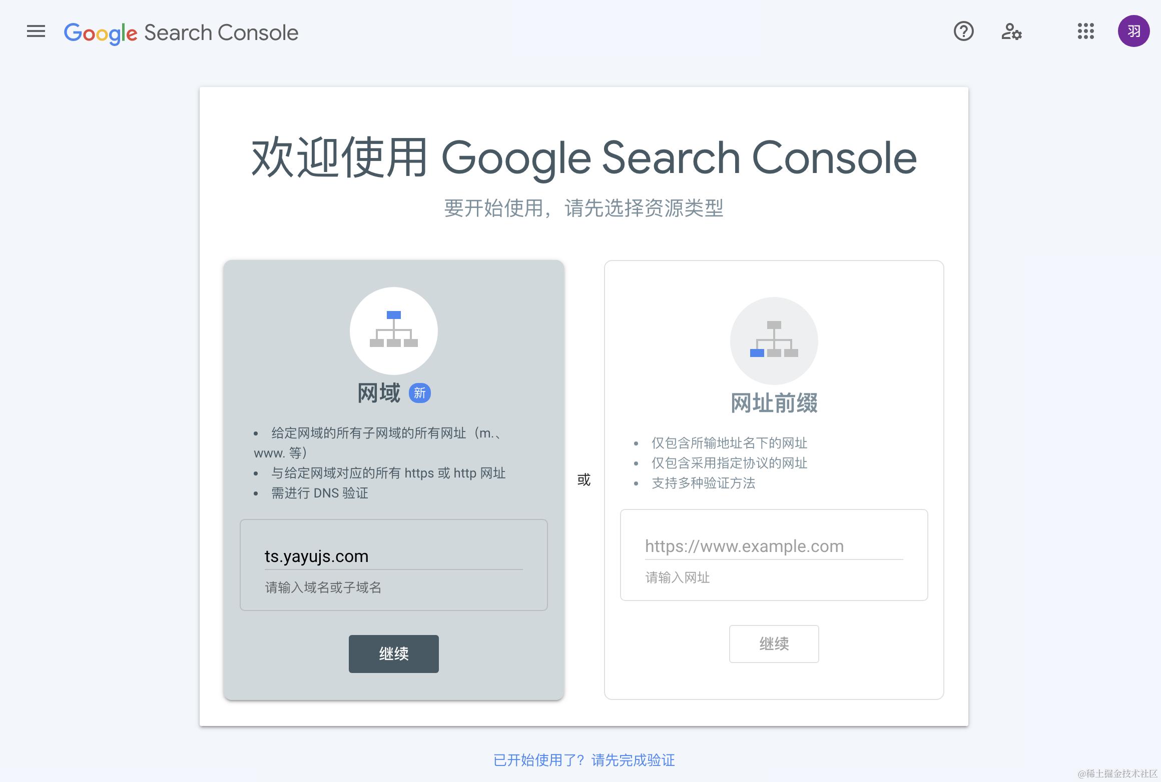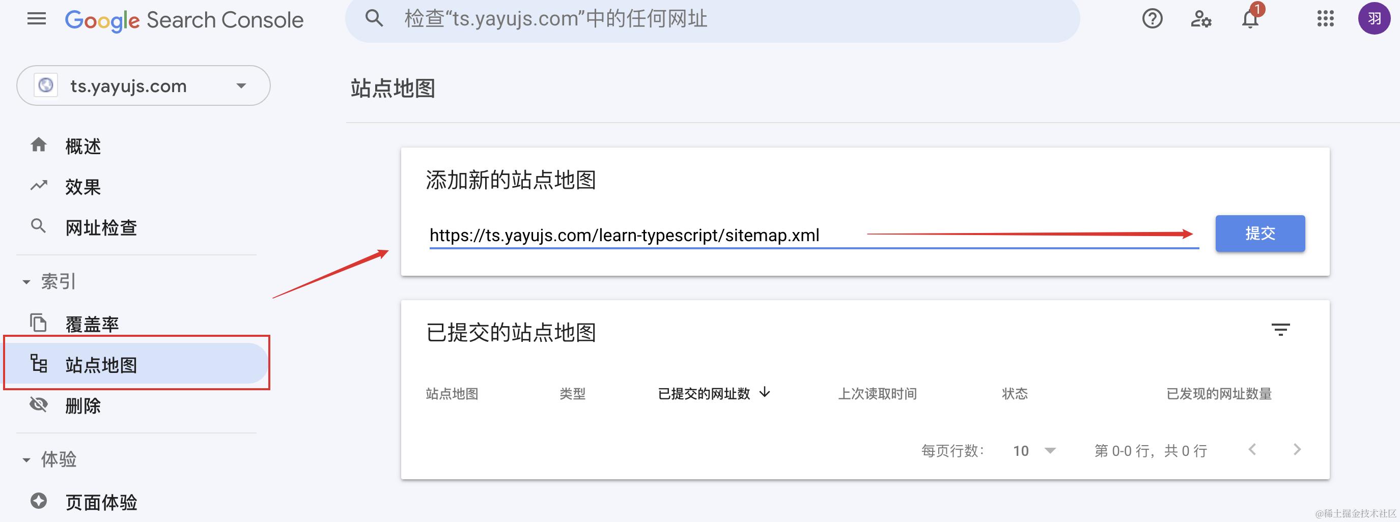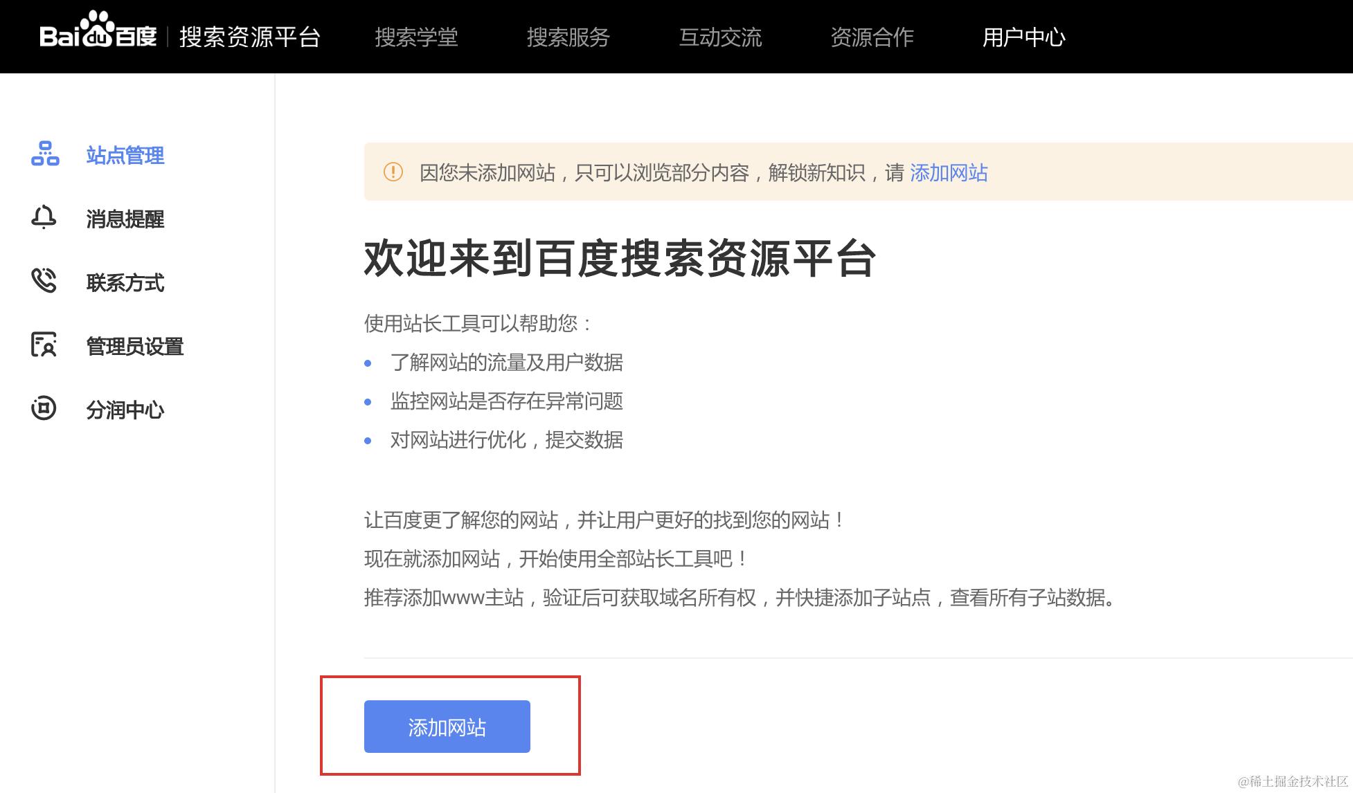 访问 search.google.com,如果你之前没有添加过站点,会直接让你添加站点: