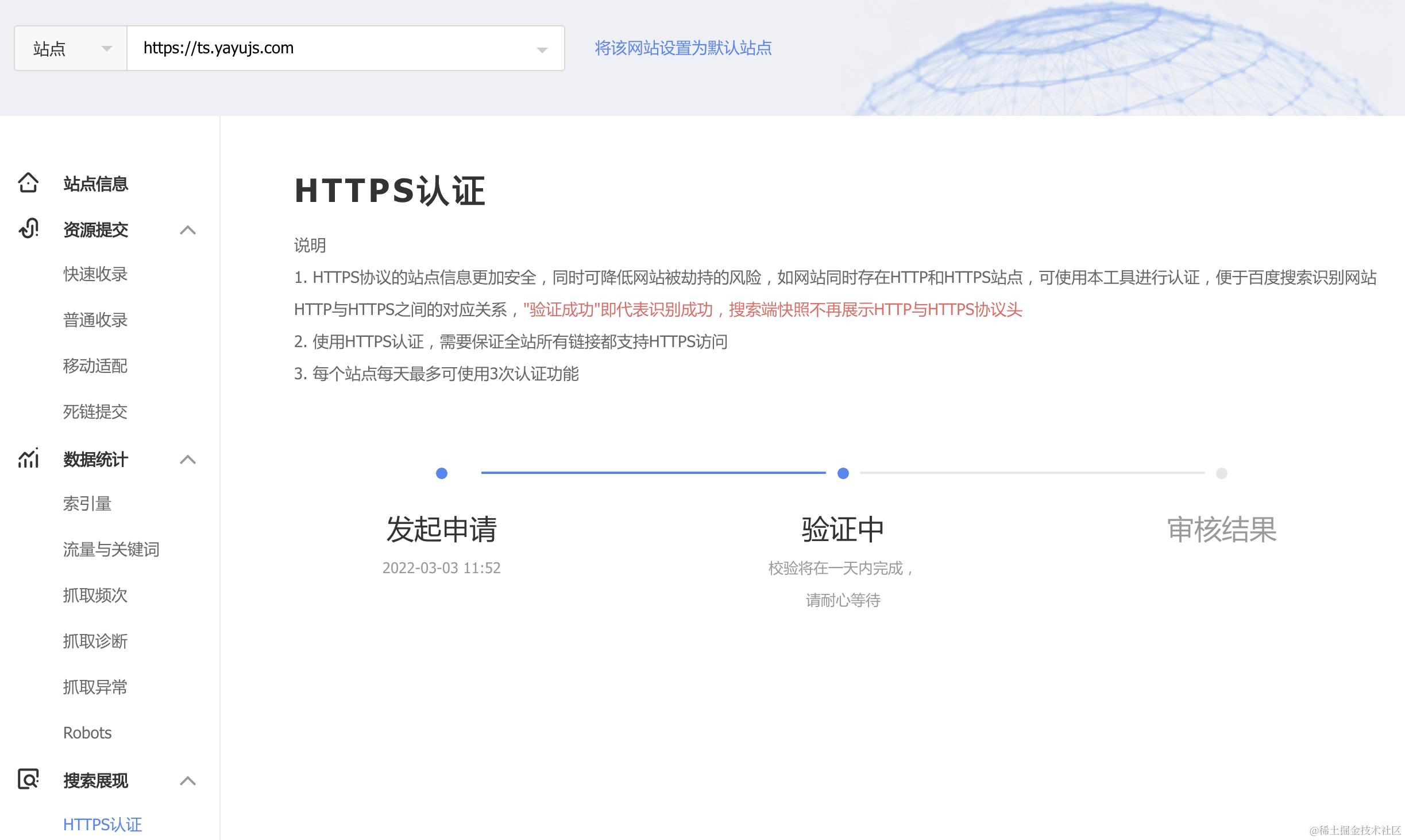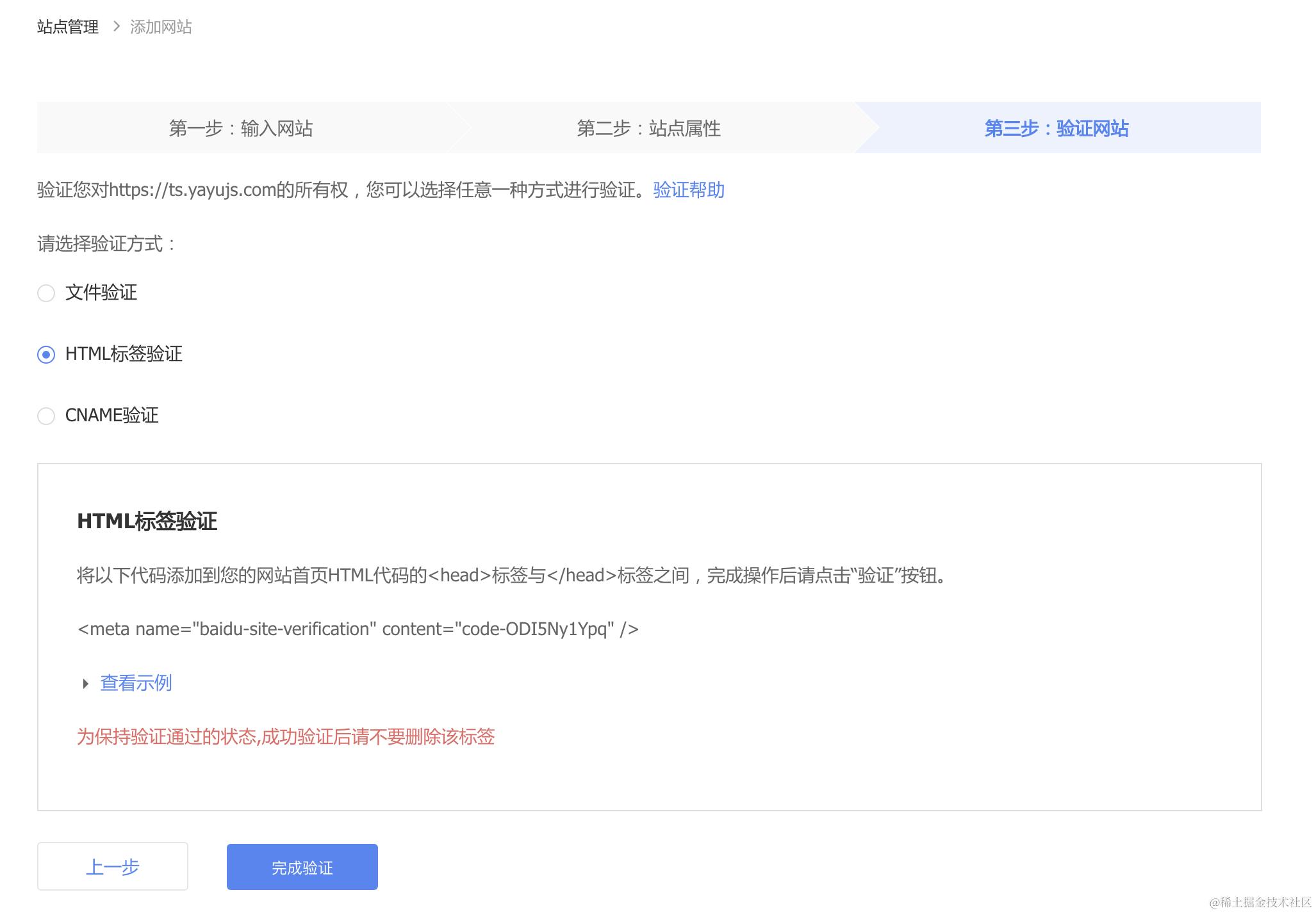 第三步:验证网站