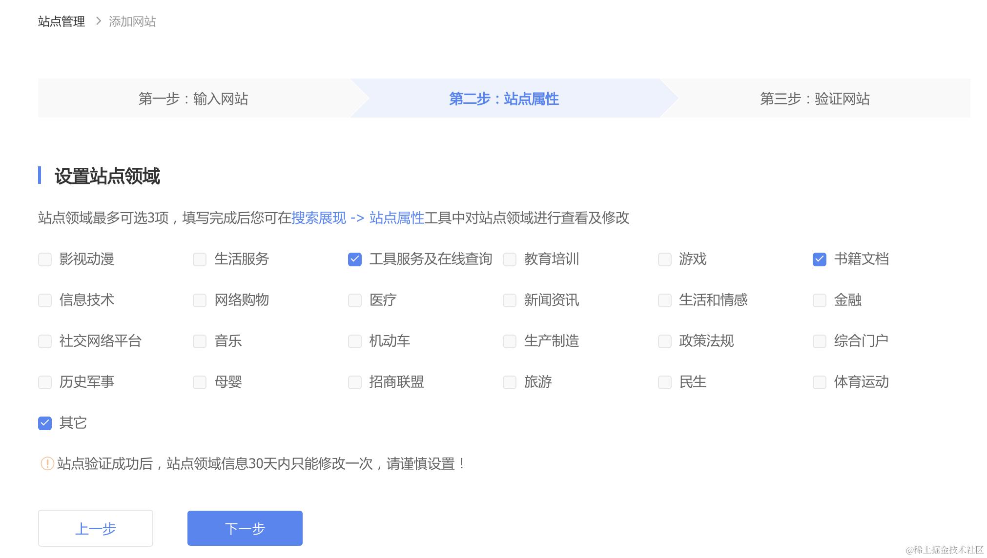 点击「添加站点」,可能需要你完善下账户信息,然后会进入站点信息填写页面,分为三步: