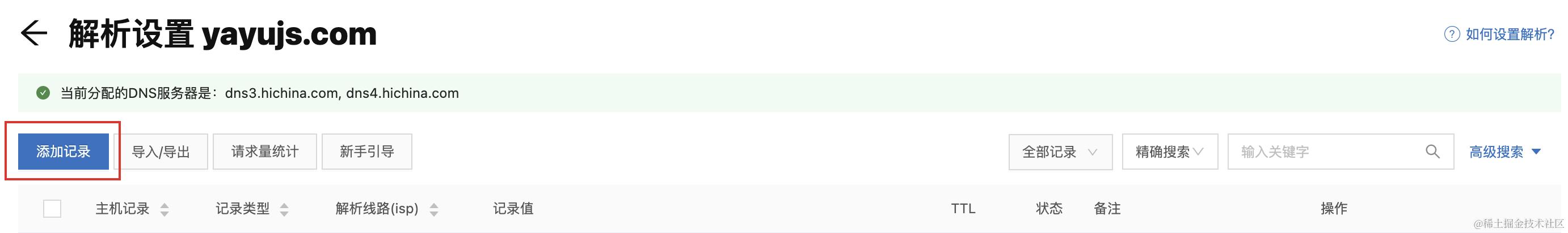 然后点击「添加记录」: