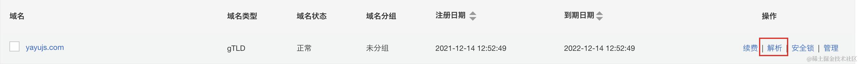 由于我是在万网购买的域名,所以直接访问阿里云域名控制台,然后选择对应的域名点击 「解析」: