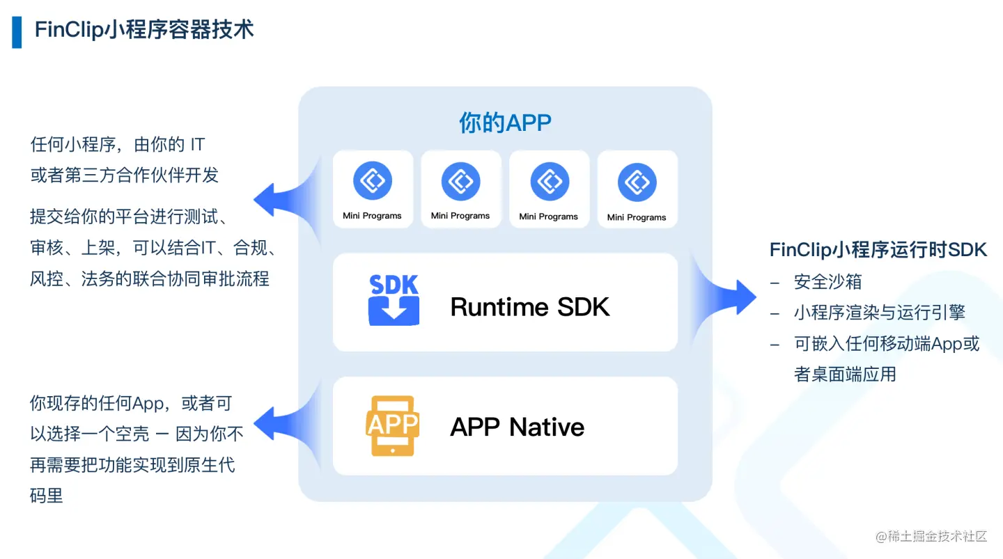 目前市面上也提供了小程序的通用解决方案,今天为大家介绍一下:FinClip。它的最大特点,就是能够让任何 App 运行小程序。