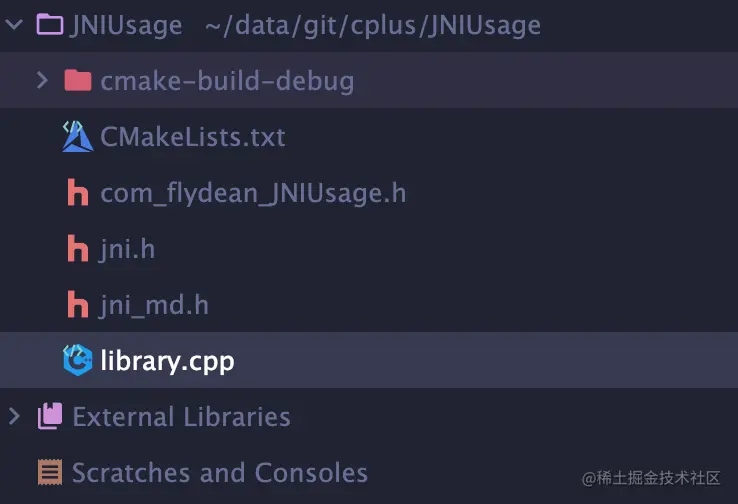 然后将com_flydean_JNIUsage.h文件拷贝到项目的根目录下。