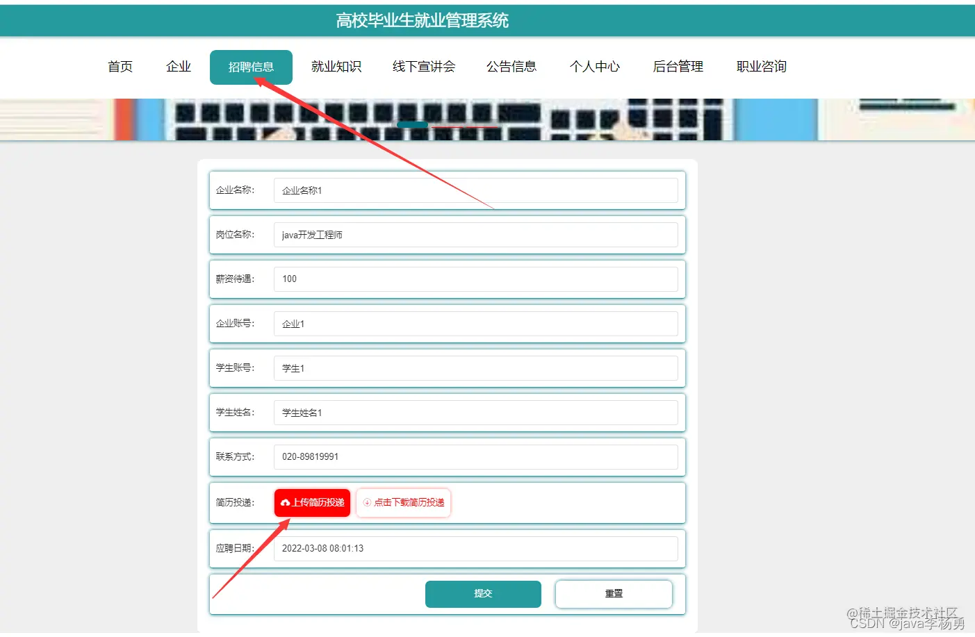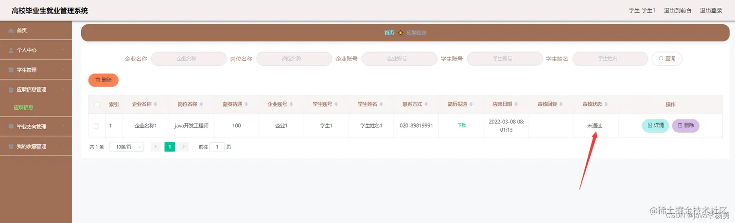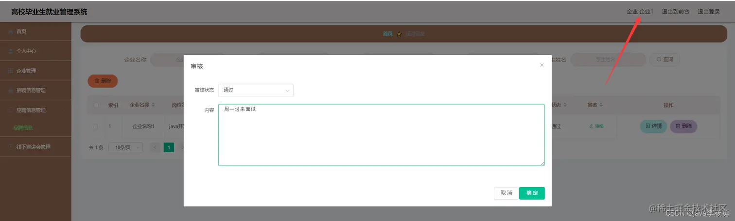 用户填写应聘信息:管理员或企业收到应聘信息进行审核、审核后在用户端可以看到