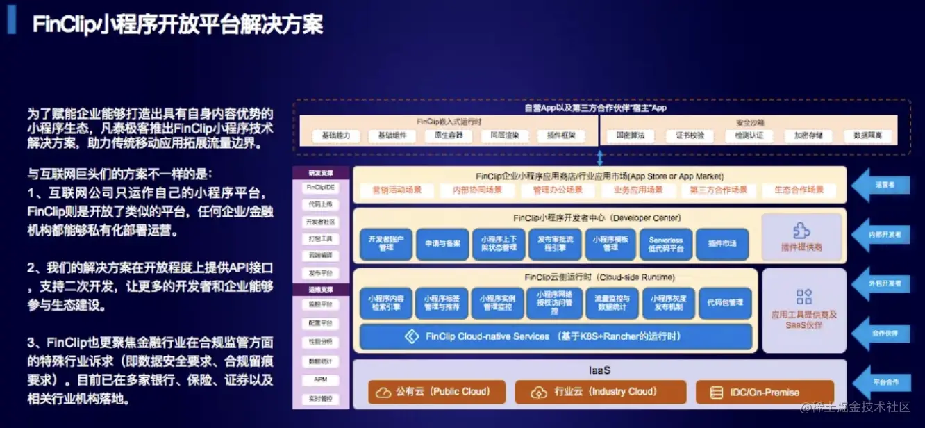 以上我讲的是我们对数字化转型时代对 App 的一些共性要求,**这些解决方案也是目前凡泰极客已经在为各行业的客户们持续提供和输出的。而凡泰的解决方案最核心的一点就是拥抱互联网的社交的超级 App 进而给其他行业客户进行赋能。例如与我们联系最紧密的微信,凡泰极客创始之初就以微信的技术标准为核心,打造了一个完全自主的企业内部小程序应用商店,**它与微信是完全兼容的,可以使我们的客户能够将微信内的400万个小程序直接拿来为自己所用。