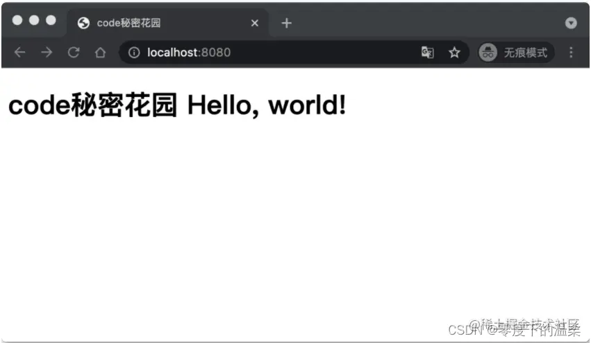 下面,执行 npm install,然后 npm run dev,你就可以跑起来一个非常简单的 React 应用: