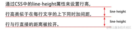 line-height 设置文字的行高,设置行高相当于在每行文字的上下同时加间距, 如:line-height:24px;