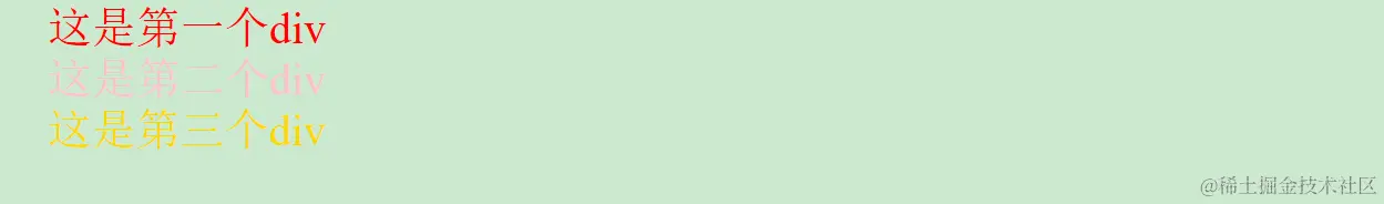.green{ /* 注意类选择器是通过.类名的形式表现的,嵌入是通过标签class属性的形式引入的 */