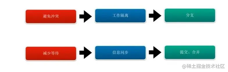 要避免冲突,唯一的方法是大家彼此隔离,分开就没有冲突。在代码库里面,很多时候通过分支的方式,来做工作之间的隔离,避免冲突。
