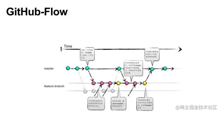 所以GitHub—Flow很简单,可以做相应地隔离,但是如果说本身基础设施或工程能力比较弱,它会限制你集成和发布的频率。