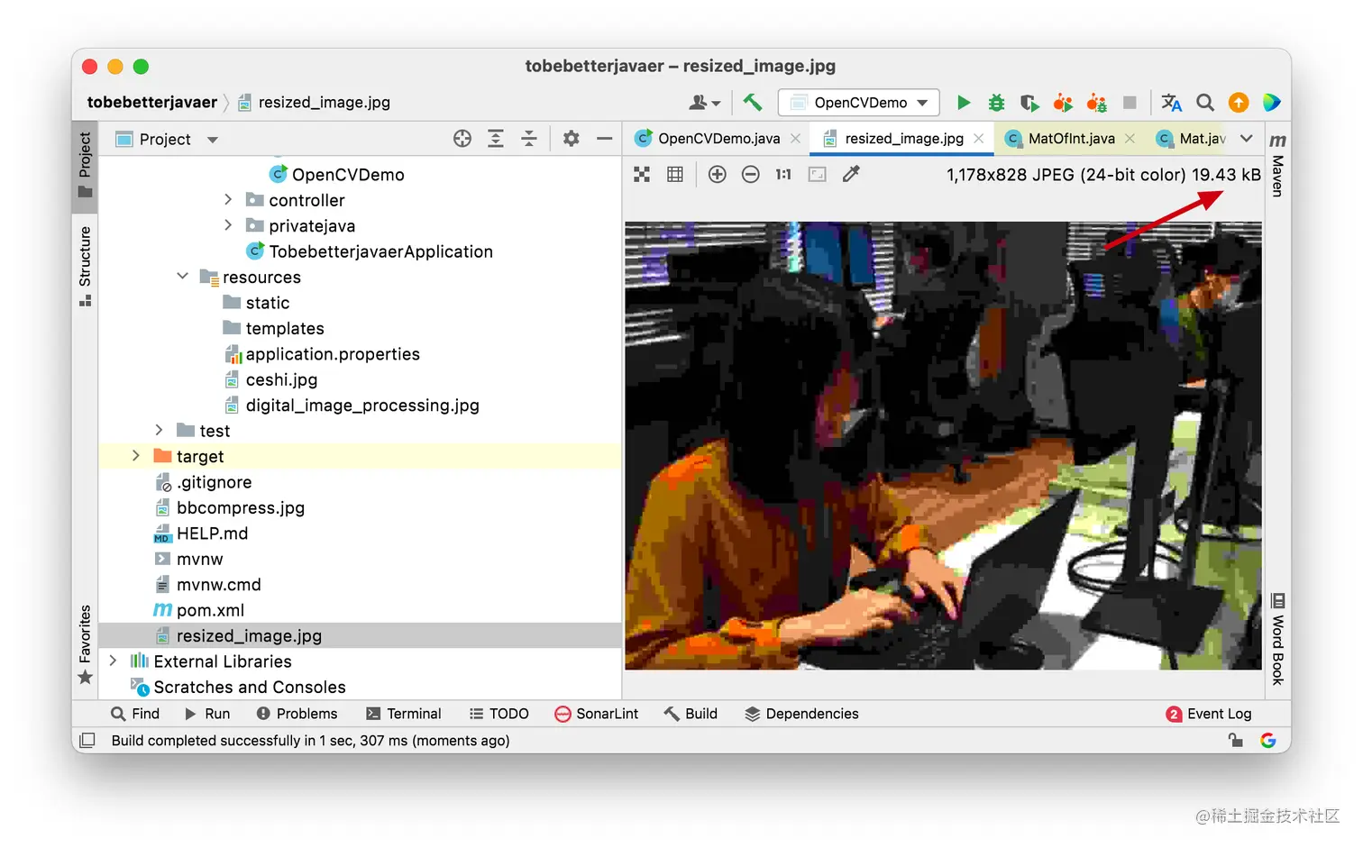 执行压缩后,可以看到图片的大小压缩到了 19 KB:
