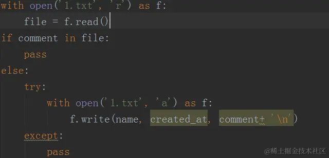 8、对获取到的数据,做去重处理,如下图所示。如果评论已经在里边的话,就直接pass掉,如果没有的话,继续追加即可。