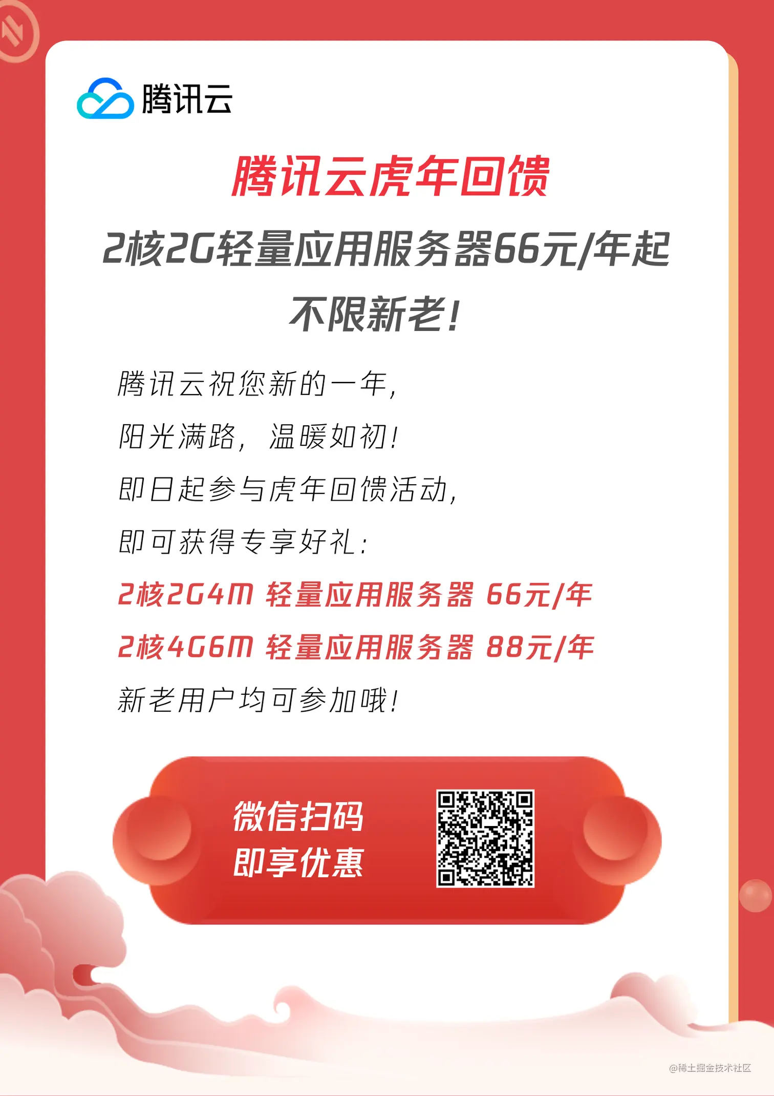 2.微信分享助力拉3个人关注公众号,就有66元2C2G4M和88元2C4G6M的购买资格,每个配置可以冲3台。