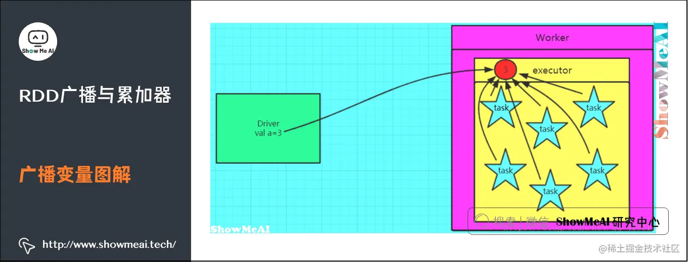 但是,当这个变量被声明为累加器后,该变量就会有分布式计数的功能。