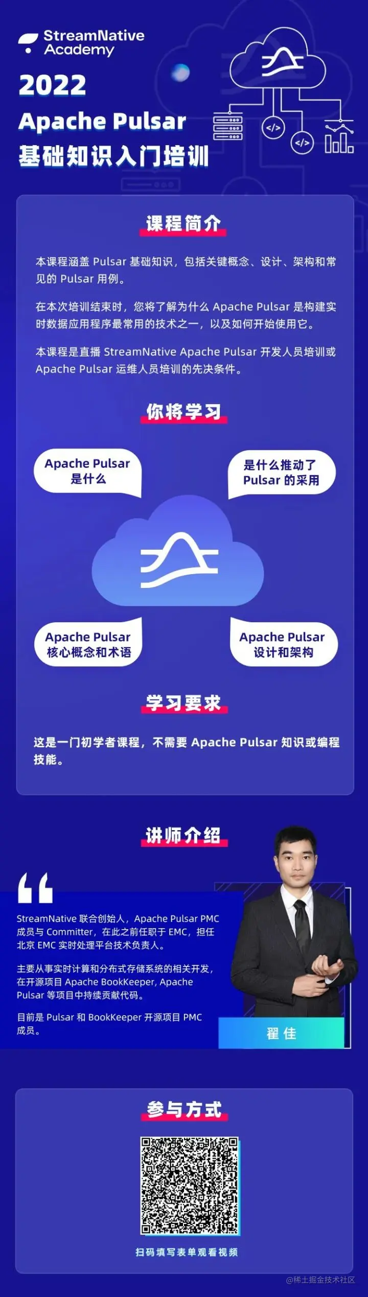 本课程是直播 StreamNative Apache Pulsar 开发人员培训或 Apache Pulsar 运维人员培训的先决条件。