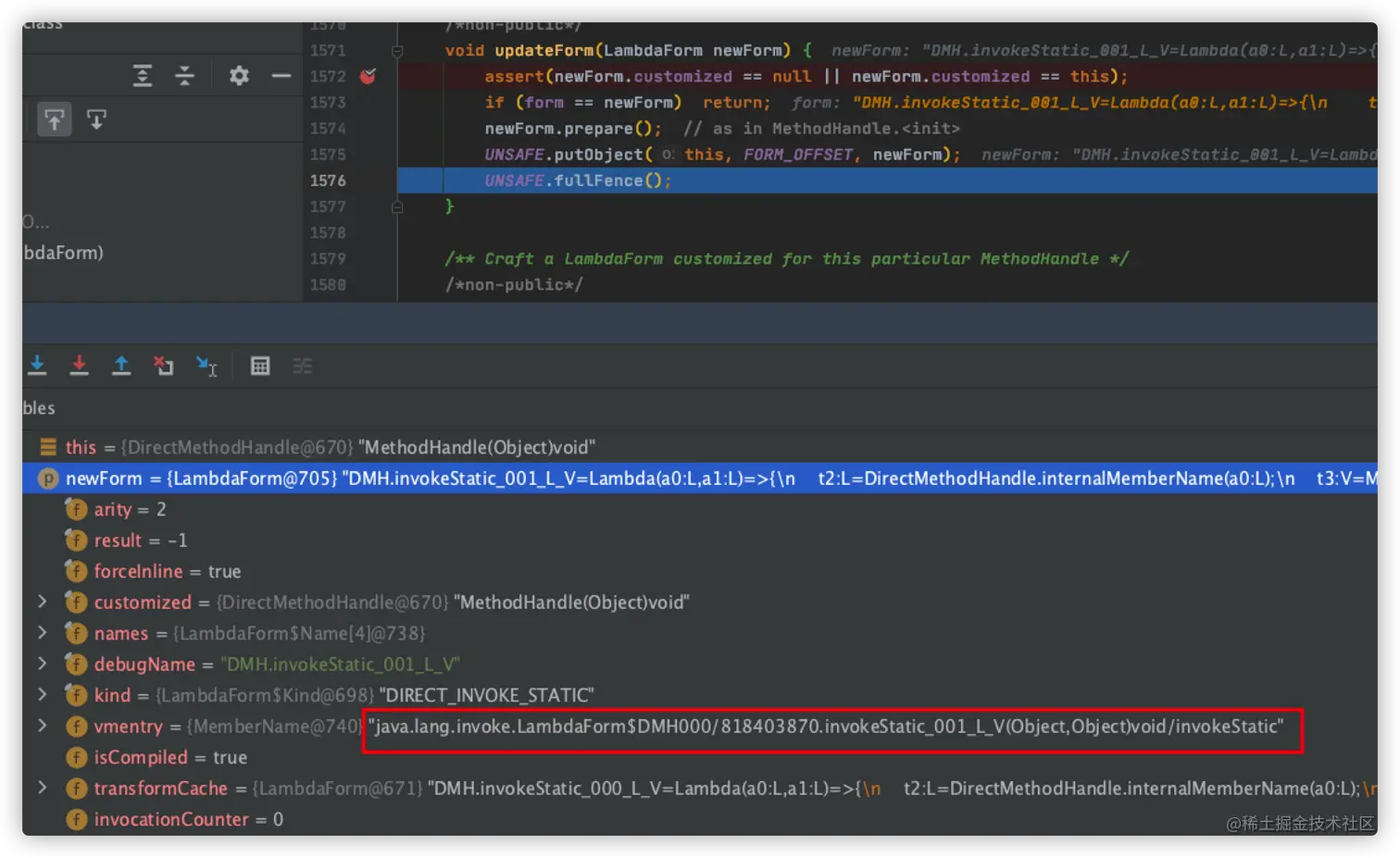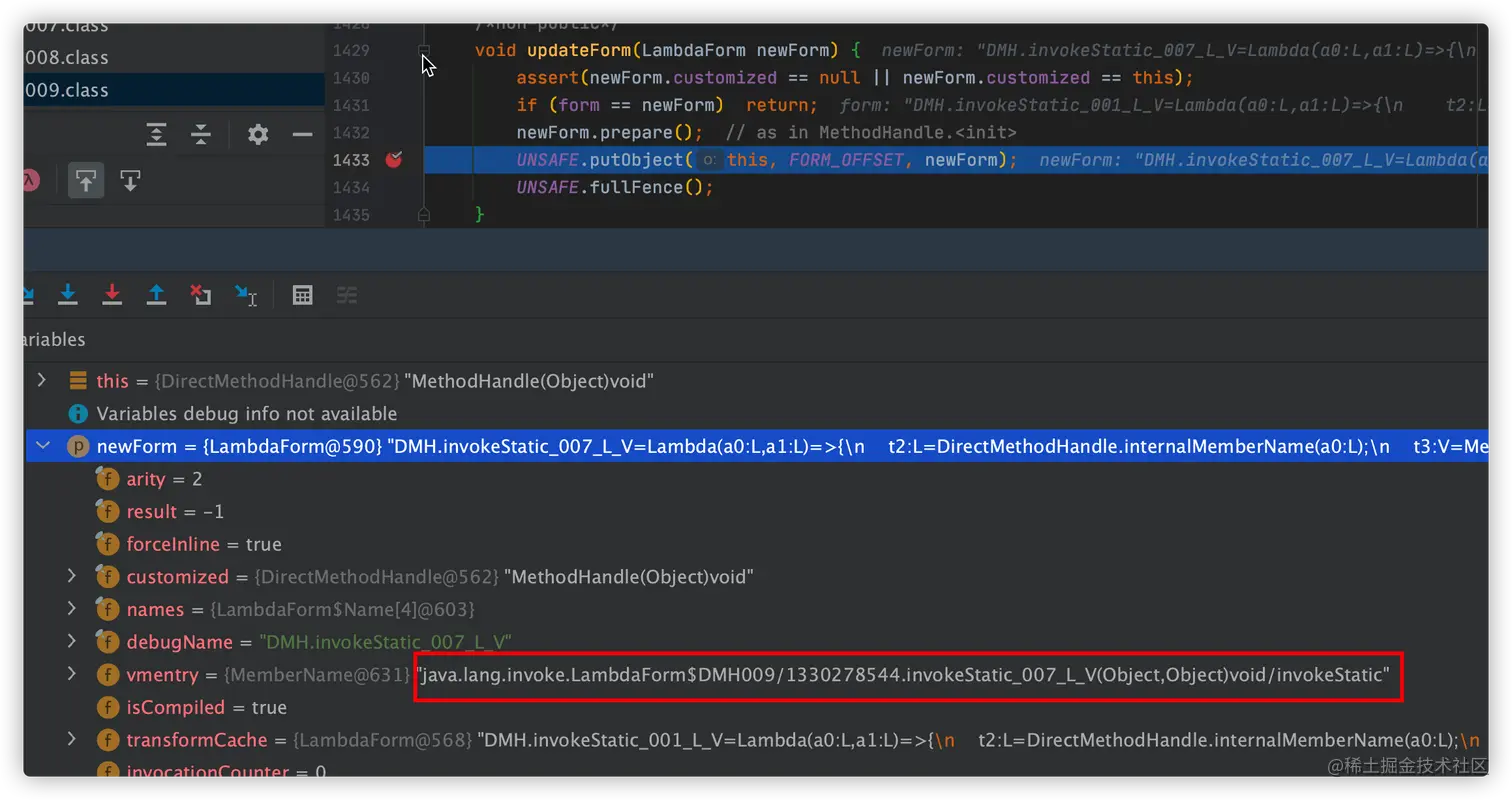 可以看到,在该方法中会创建一个新的 LambdaForm 对象,接着执行 updateForm 方法,将新的 LambdaForm 对象更换到内存中。