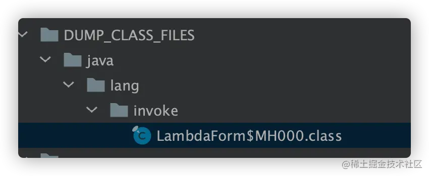 接下来我们就要想办法来获取对应的 class 文件,首先是 LambdaForm(后续我们称之为适配器) 相关的 class 文件,可以通过添加虚拟机参数将之导出成 class 文件(-Djava.lang.invoke.MethodHandle.DUMP_CLASS_FILES=true)。