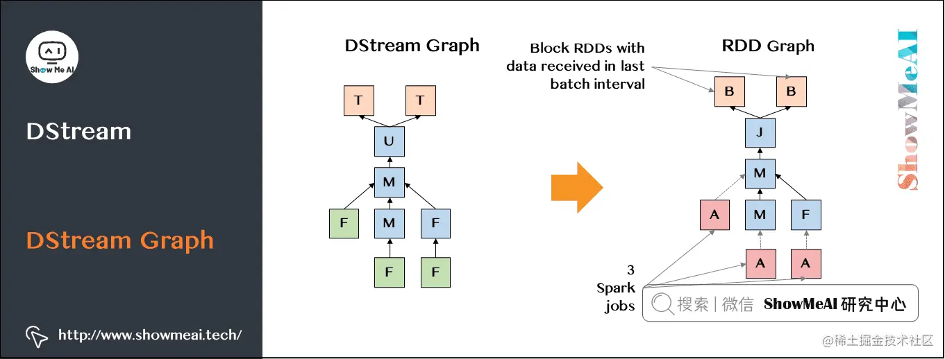 - 针对某个时间段切分的小数据块进行RDD DAG构建。