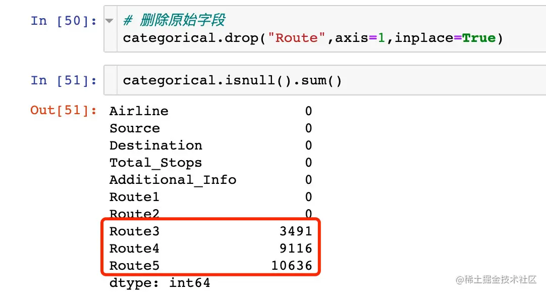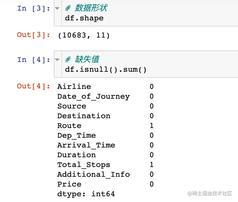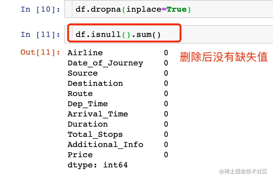 正常的字段是10683条,其中两个字段是10682条;缺失值的占比很小,考虑直接删除的数据