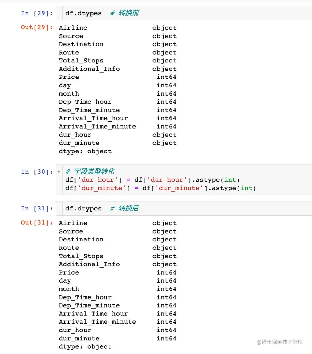 查看转换之后的字段类型:
