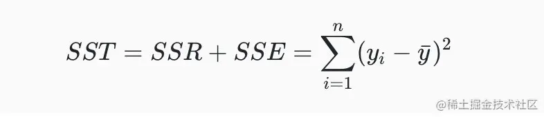 假设我们用表示数据真实的观测值,用表示真实观测值的平均值,用表示通过模型得到的预测值,则: