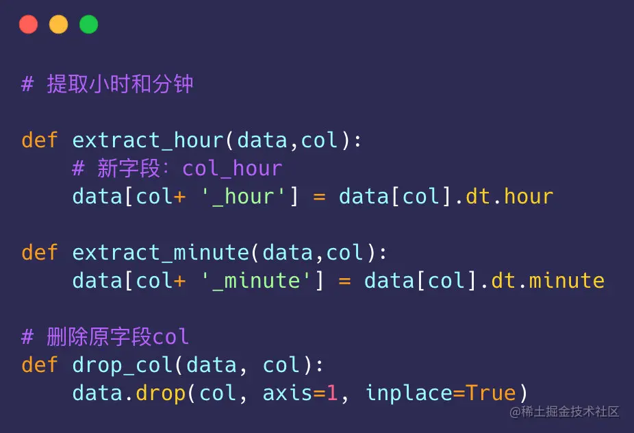 主要提取两个时间中的“小时”和“分钟”信息;同时删除原字段:
