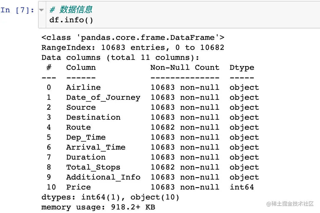 查看数据的基本信息,包含:数据形状、字段类型等
