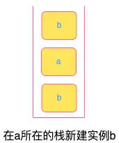 当Activity a启动使用standard模式的Activity b时,不管应用中a所在的栈中是否已经存在b的实例,系统都会创建一个实例b,并将其放在a所在的栈中,如下图所示。