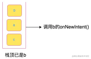 当栈顶的实例是b时,系统不会新建一个实例b,而是调用已经存在的实例b的onNewIntent()方法。