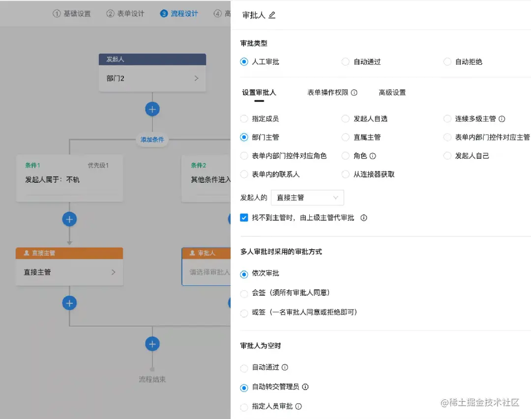 钉钉审批的流程配置就是一个十分复杂的结构: