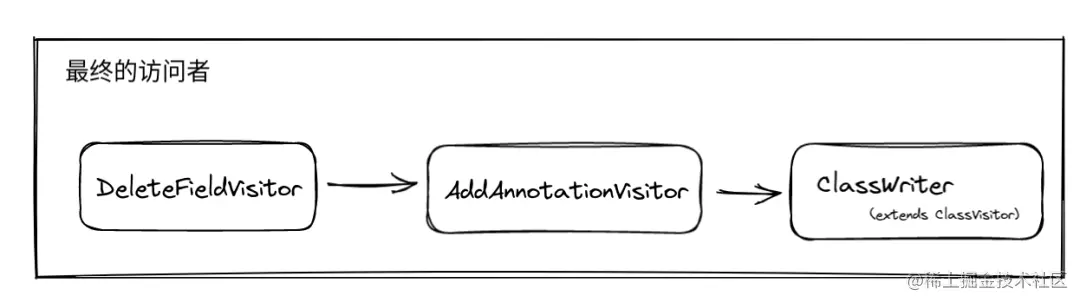 这两种编写方式有什么区别呢?Visitor 这个名字虽然看起来像名词,但是从前面的例子和论述来看,它的实现类全部是关于操作的抽象,从模式匹配的实现方式中就更能看出这一点,ASM 中甚至将 Visitor 作为一个个小操作的抽象进行排列组合,因此两种编写方式也对应两种世界观: