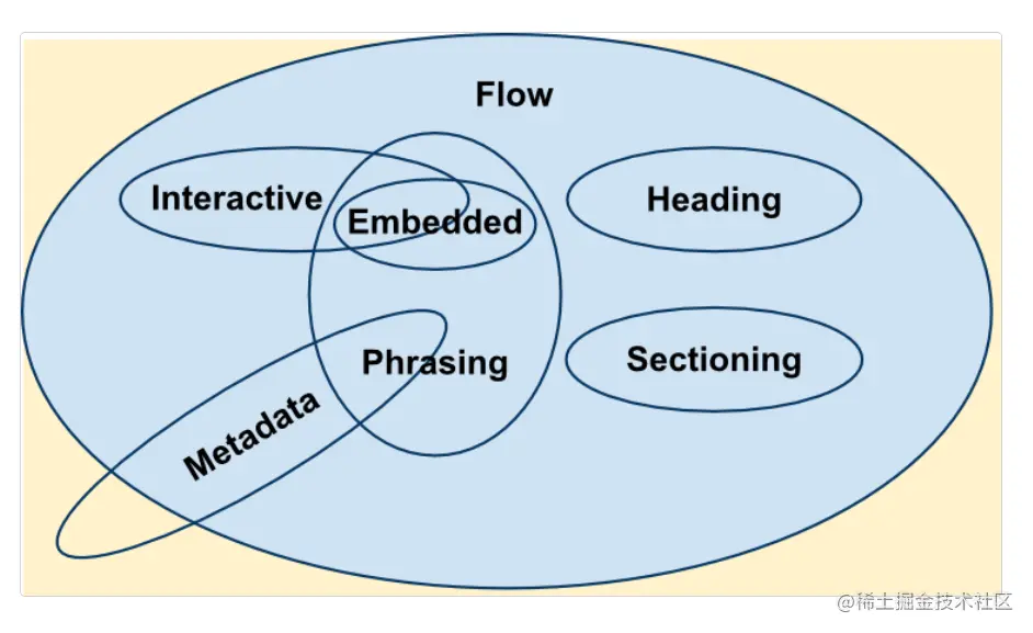 - 在HTML 5中, 提出了新的内容模型分类