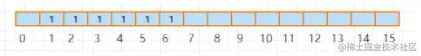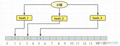 抛开旺财的存在,小强此时是这样子在布隆过滤器中的,结合旺财和小强实际的数组是这样子的: