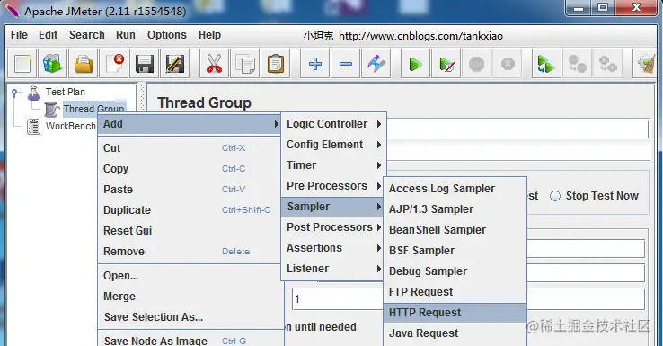 必须新建一个Thread Group, jmeter的所有任务都必须由线程处理,所有任务都必须在线程组下面创建