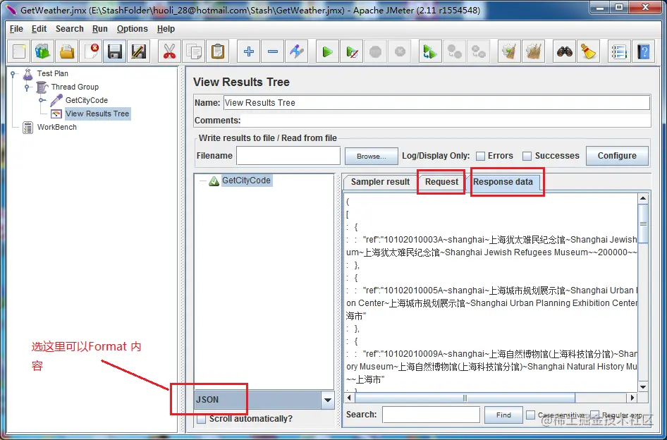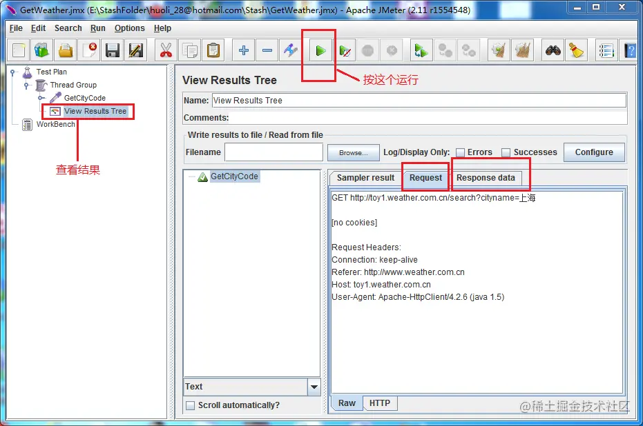 现在新建第二个Http Request, 发送到: www.weather.com.cn/weather2d/$…