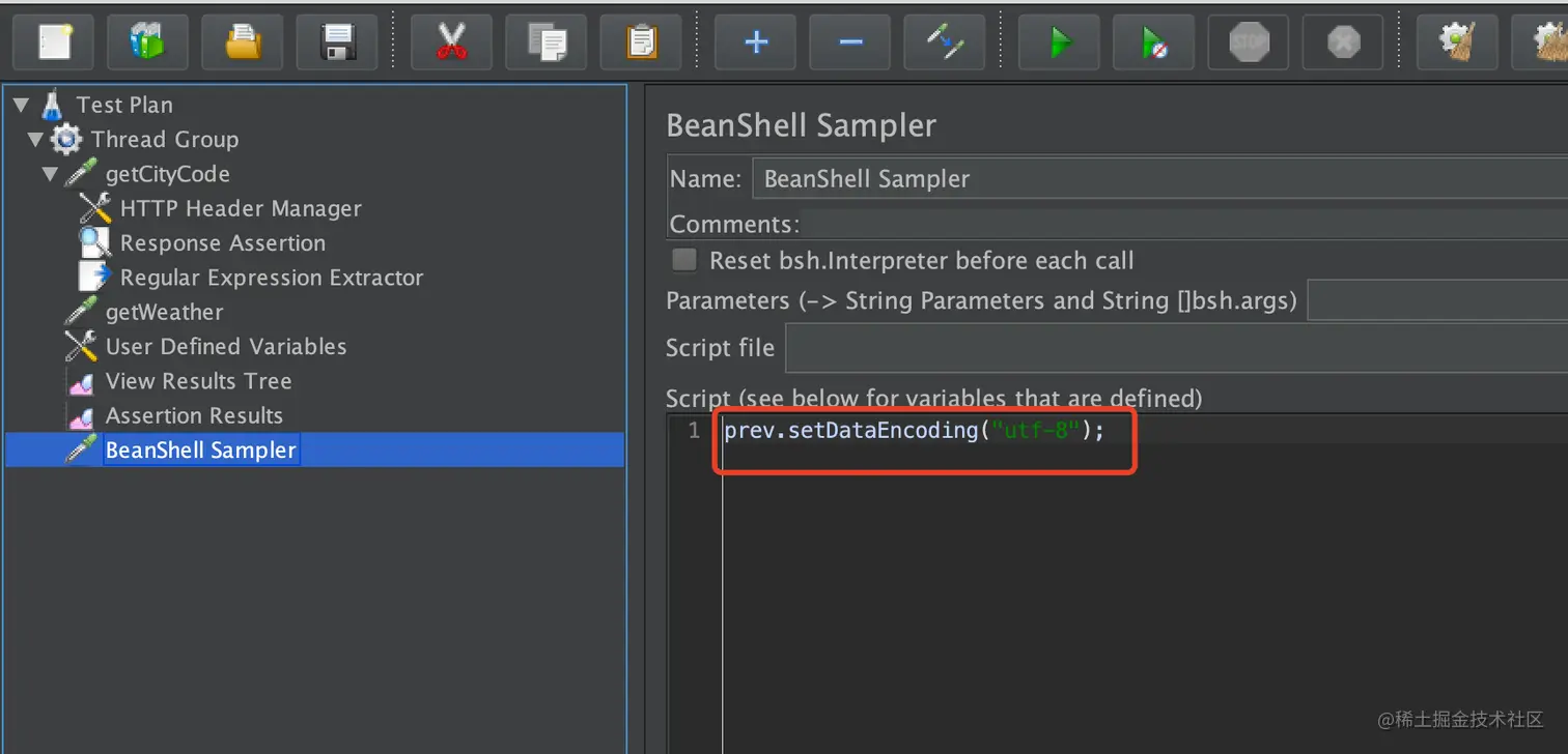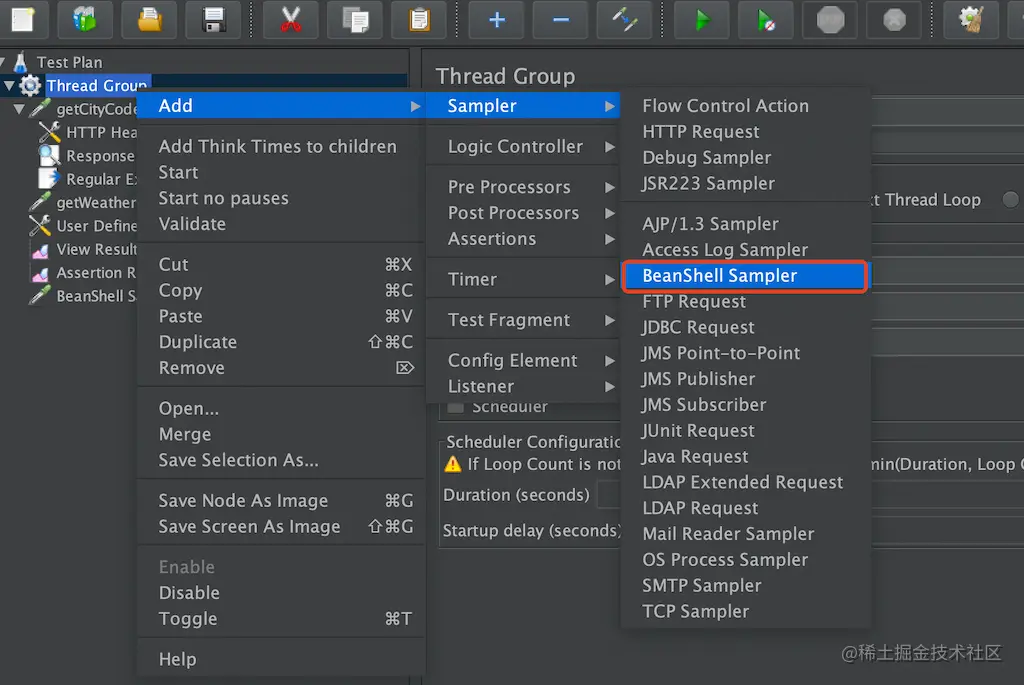 - 添加BeanShell Sampler注意要在HTTP请求后面添加