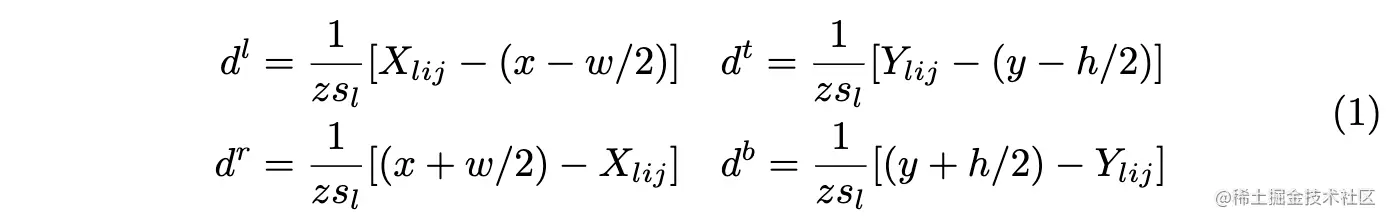 对于目标,中心区域为,为缩放因子。当目标被赋予金字塔层且anchor point 位于内时,则认为是正样本点,分类目标为,回归目标为归一化的距离,分别为当前位置到目标四个边界的距离: