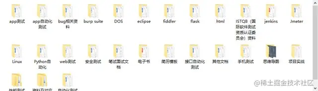 资料包括了很多测试行业常见知识,其中包括了有基础知识、Linux必备、Shell、互联网程序原理、Mysql数据库、抓包工具专题、接口测试工具、测试进阶-Python编程、Web自动化测试、APP自动化测试、接口自动化测试、测试高级持续集成、测试架构开发测试框架、性能测试、安全测试等