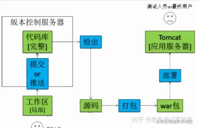 针对这种情况,持续集成被引入到测试工作中,协助测试人员进行自动化部署、启动、测试,常用到的工具有,jenkins、docker、git/svn。