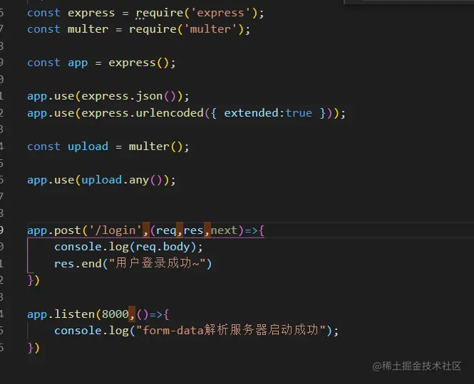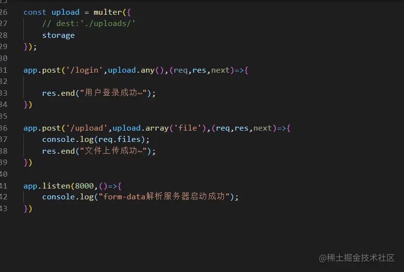 采用了express的库multer 用来解析 form-data格式的数据