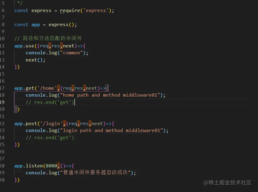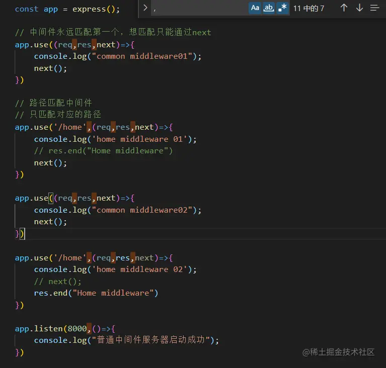 (如果不调用res.end()就必须调用next()将控制权传递给下一个中间件功能,否则请求将会被挂起)