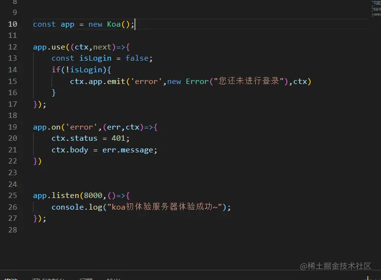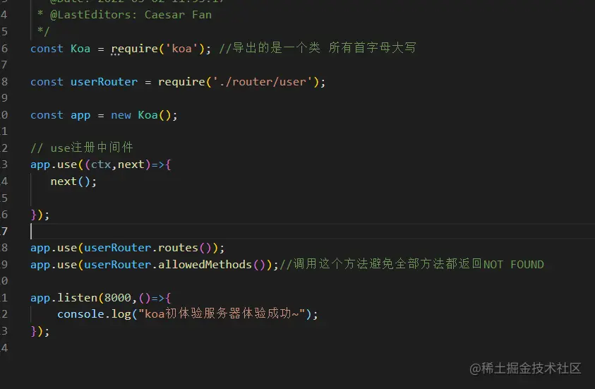 koa的核心代码只有1600+行,是一个更加轻量级的框架,我们可以根据需要安装和使用中间件