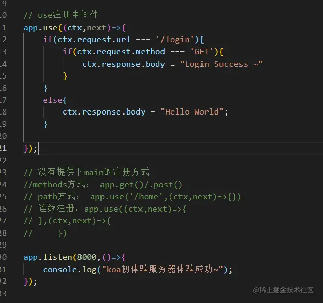 koa通过创建的app对象,注册中间件只能通过use方法: