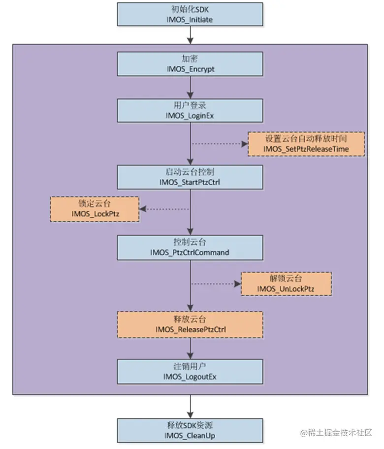 首先,通过宇视SDK文件查看控制云台的流程。大致流程图如下图: