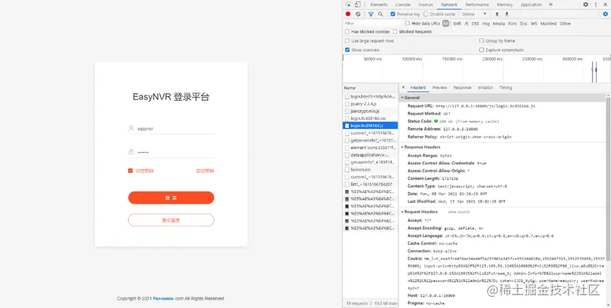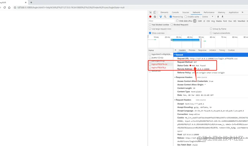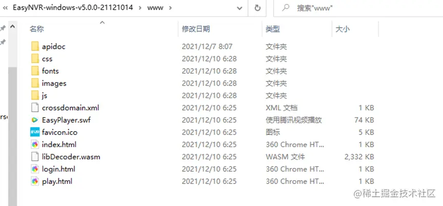 3)如上图所示,可以发现前端的控制台返回 404 not found 错误。404就是无法找到相对应的页面进行显示,所以我们进行查看EasyNVR前端的WWW是否正常: